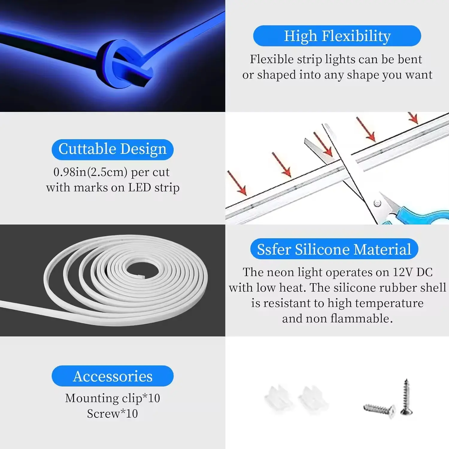 Designed for your creative lighting needs, the Neonvue Blue LED Neon Flex delivers seamless light, exceptional durability, and flexible installation! Featuring 5000K daylight + blue dual-color emission and an IP65 waterproof silicone coating, it’s perfect for indoor and outdoor applications such as decorative lighting, commercial signage, and furniture accents. Backed by a 2-year warranty, it ensures worry-free use.