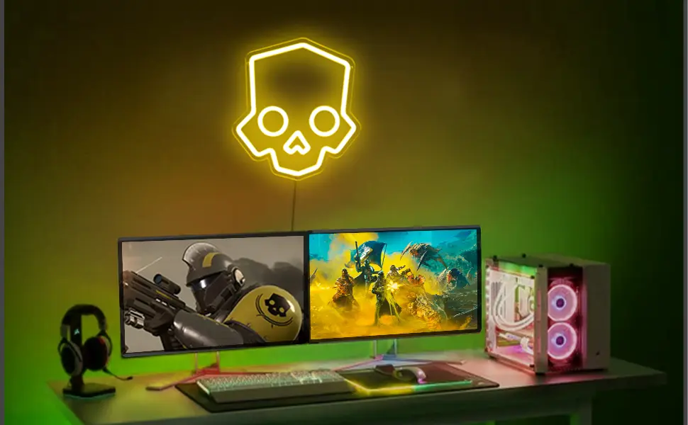 Gaming-inspired skull design adds bold flair to live streams, game rooms, or Halloween setups . At 11x12 inches (28*31cm), it includes a 23-inch hanging chain and 68-inch dimming cord for customizable brightness . Made from flexible silicone LED strips and acrylic, it’s durable, heat-free, and noiseless—ideal for man caves, bars, or bedrooms . USB-powered and eco-friendly, this vibrant neon sign replaces boring lamps while injecting edgy charm into any space .